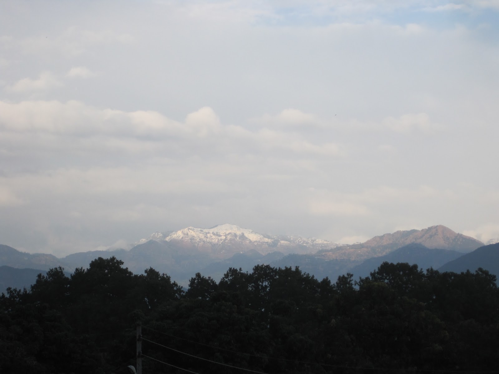 It doesn't snow in my city. We're at about 2100 ft elevation, and although the low temperature will occasionally dip just below the freezing mark the most we get is really cold rain. Just above us, however, are the foothills of the Himalayas. During the summer it's easy to become accustomed to their size and think they're not that big, (they're over 8000 ft) but when they get a little snow on them they begin to resemble their gigantic brothers and sisters that are just a little farther north. It snowed up in the mountains New Year's Eve, and this is the view I was given from my balcony: